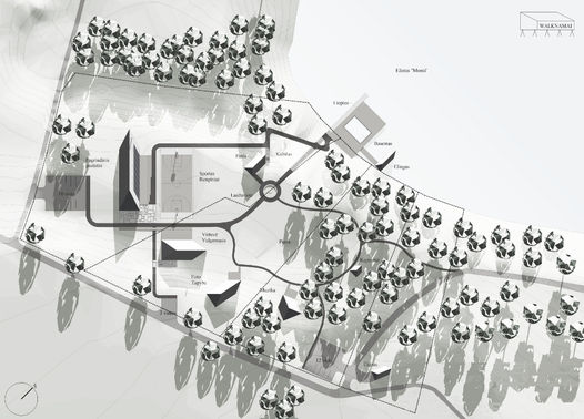 The greatest office's getaway from the city. Company "Tegra" decided to transfer part of it's office out of town, on the waterside of lake "Monis". "Walknamai", or "Walkhouses" - trotter houses as the symbol of motion forward, innovations, freedom, creativity.